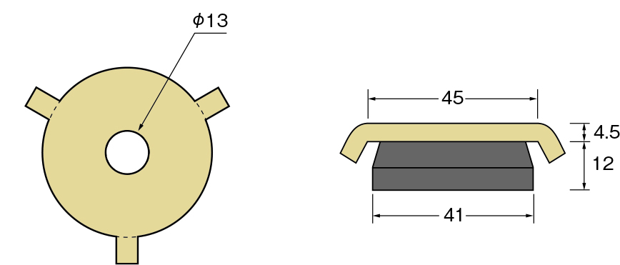| 材質 | 座金部 JIS G 3131(熱間圧延軟鋼板及び鋼帯)SPHC ゴム部 天然ゴム |