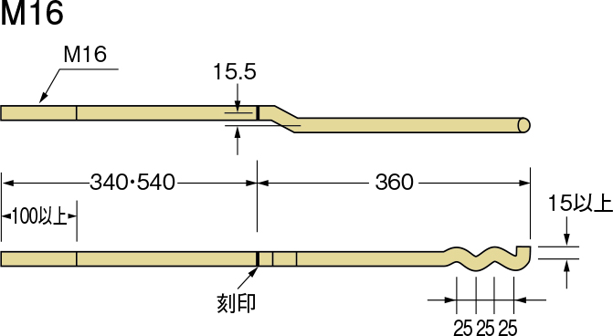 | M16×900 | AA340900 | 10本 | 六角ナットM16(10個) | 14.6 |