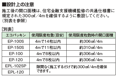 ①エコパッキンはリサイクル原料を使用しています。全周換気で通気性能が1.4〜2倍にUPします。