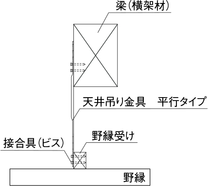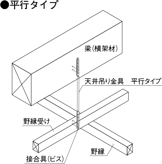 横架材と同じ向きに野縁受け材を配置する場合には「平行タイプ」を使用します。