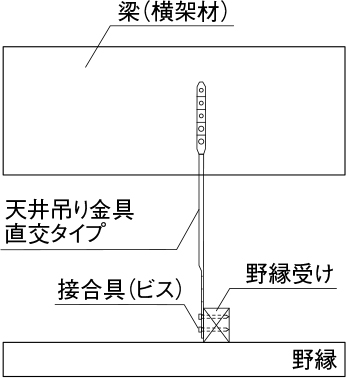 横架材と直交する向きに野縁受け材を配置する場合には「直交タイプ」を使用します。
