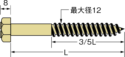 | L=110 | M12×118 | AX811000 | 200本(50本入箱×4) | 19.2 |