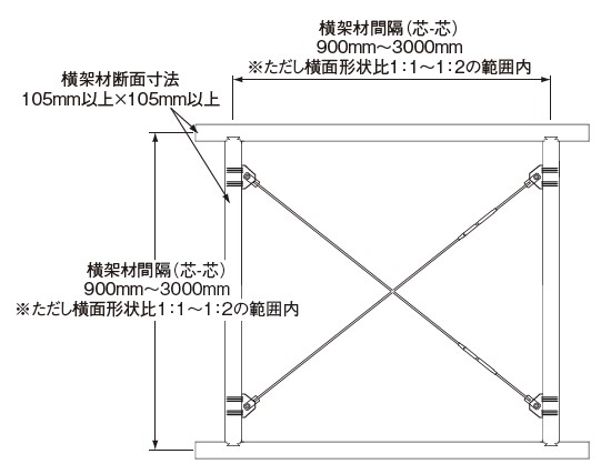 - 横架材間隔及び形状比が適用範囲を超えるものについては、評価対象外となり使用できません。