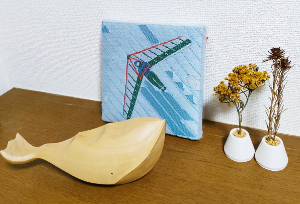 SDGsに興味があったので、文具メーカーのデットストック展に参加。海外の職人さんが造ったクジラの置物を購入しました。